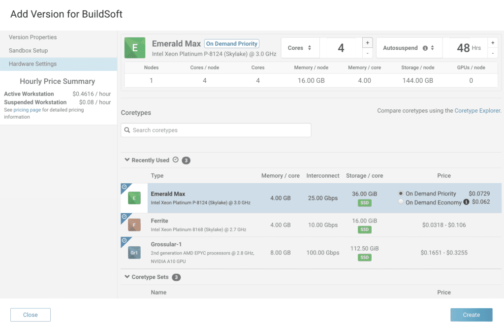 Then navigate to the “Hardware Settings” page. Here you can select from a variety of processor core types that are available, and also set the number of cores you want your sandbox to run.