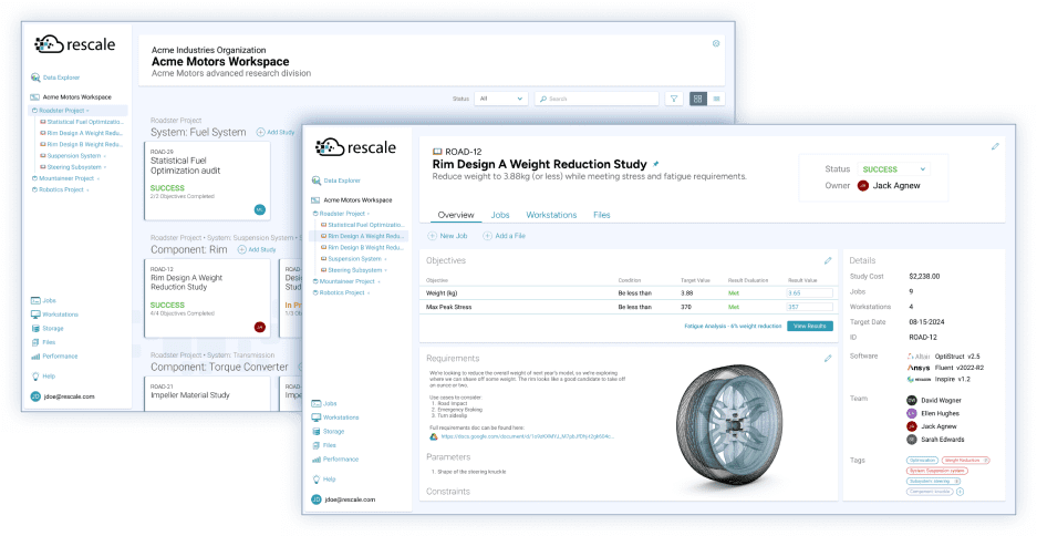 엔지니어링 데이터 인텔리전스를 통해 Rescale은 분산된 시뮬레이션 데이터를 연결된 디지털 스레드로 변환합니다. 상황에 맞는 인사이트를 통해 데이터를 자동으로 수집하고 보강하여 엔지니어의 작업 방식을 변경하지 않고도 제품 의사 결정을 가속화합니다. 기존 시스템과 워크플로를 원활하게 통합하여 혁신을 가속화합니다.